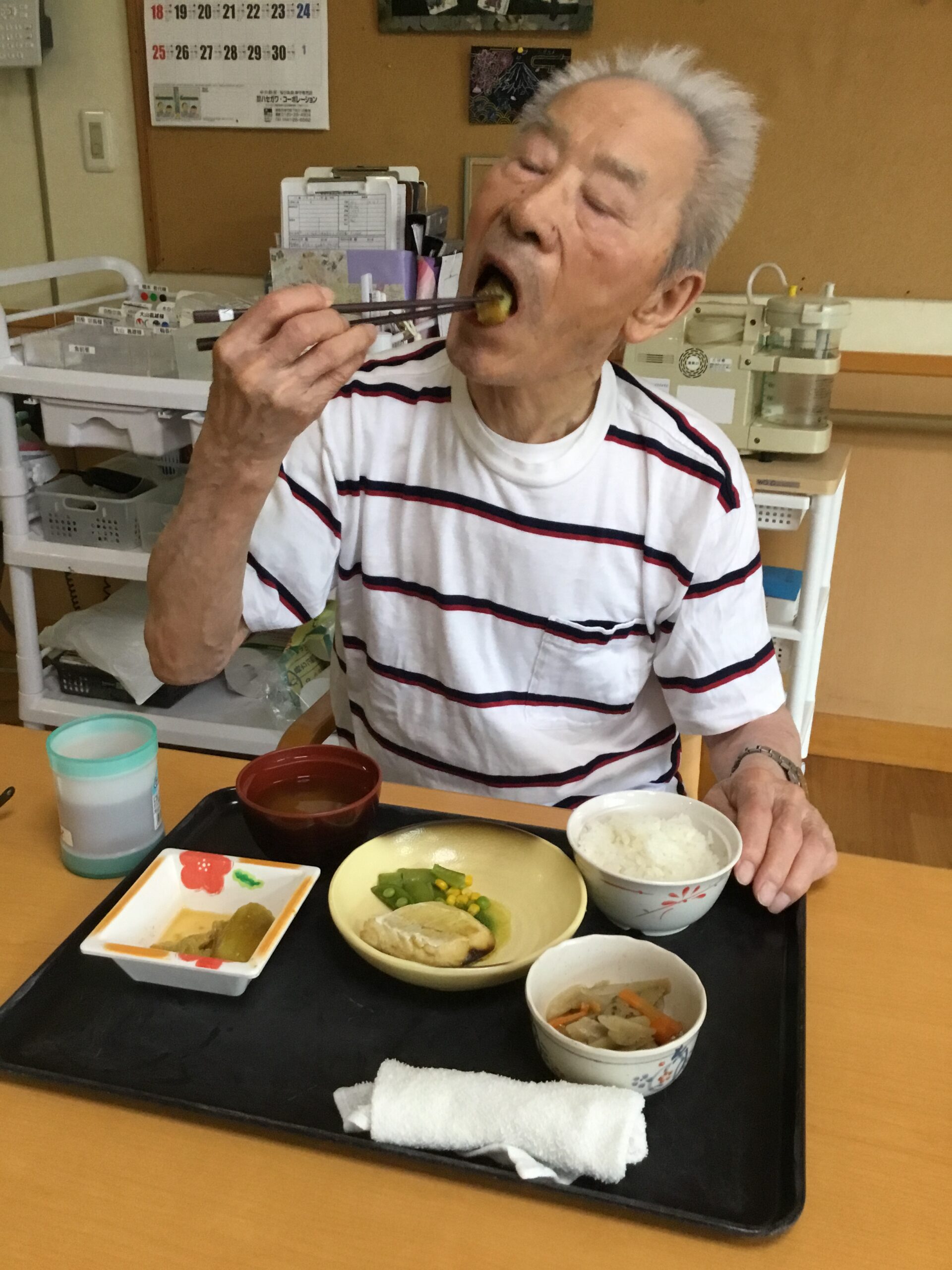 こんにちは、本日の夕食はお魚と焼き茄子です。ノンアルコールのビールと一緒に頂く事が出来ました。最近は雨の日が多く蒸し暑いですがアイドルのうちわで乗り切ります。