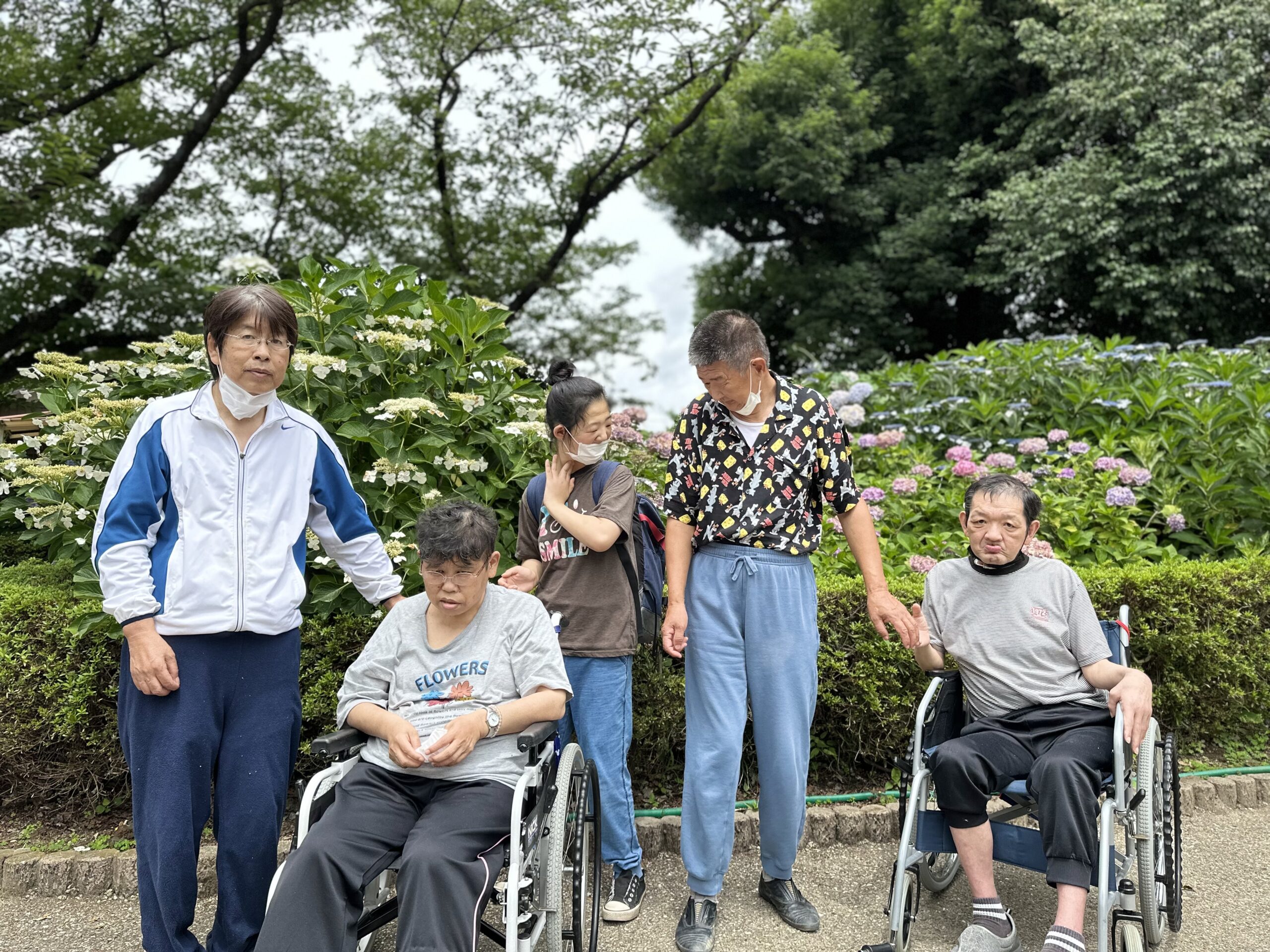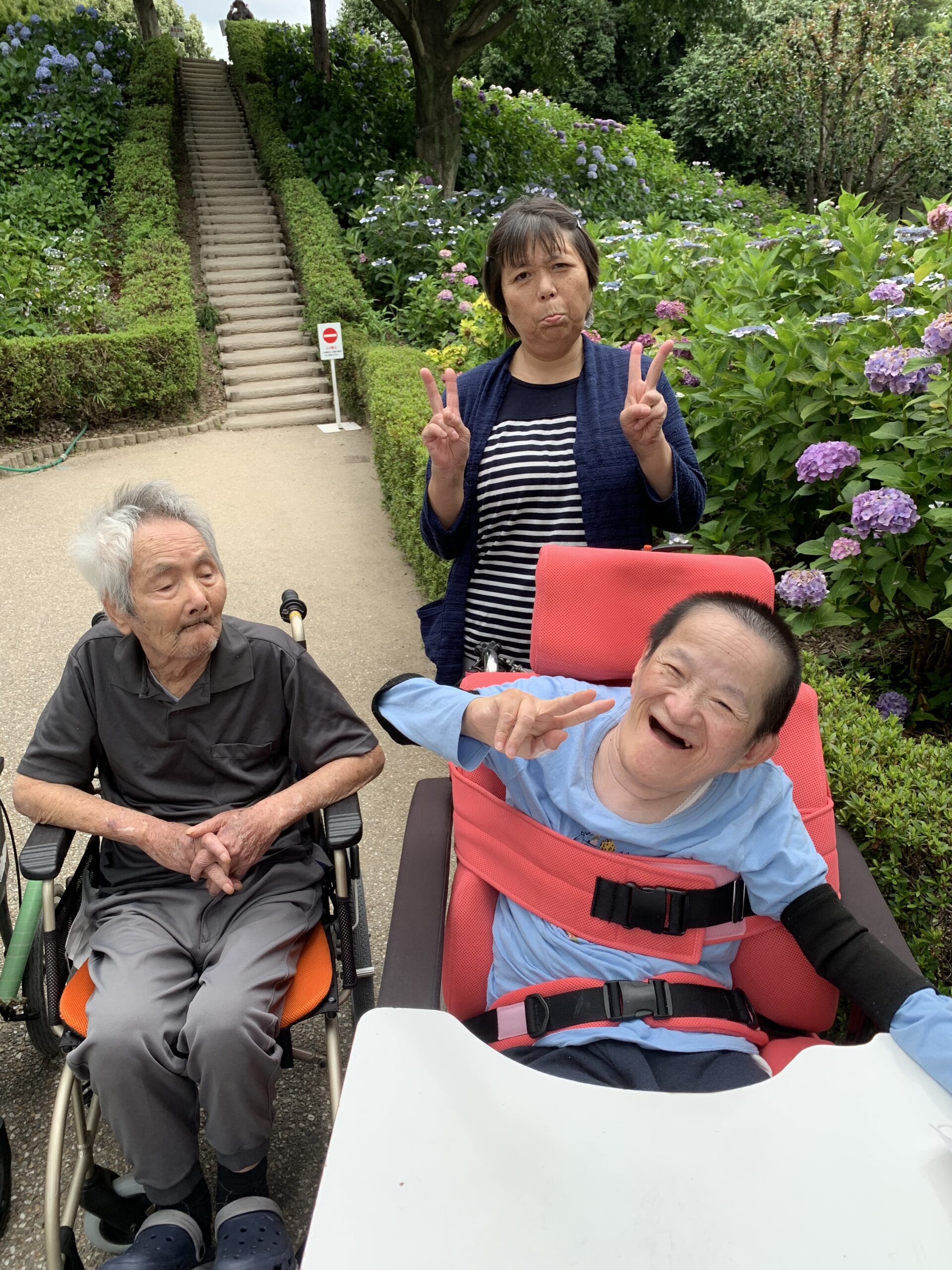 久しぶりの外出で笑顔も多く、季節の花を見ながらみなさんとても