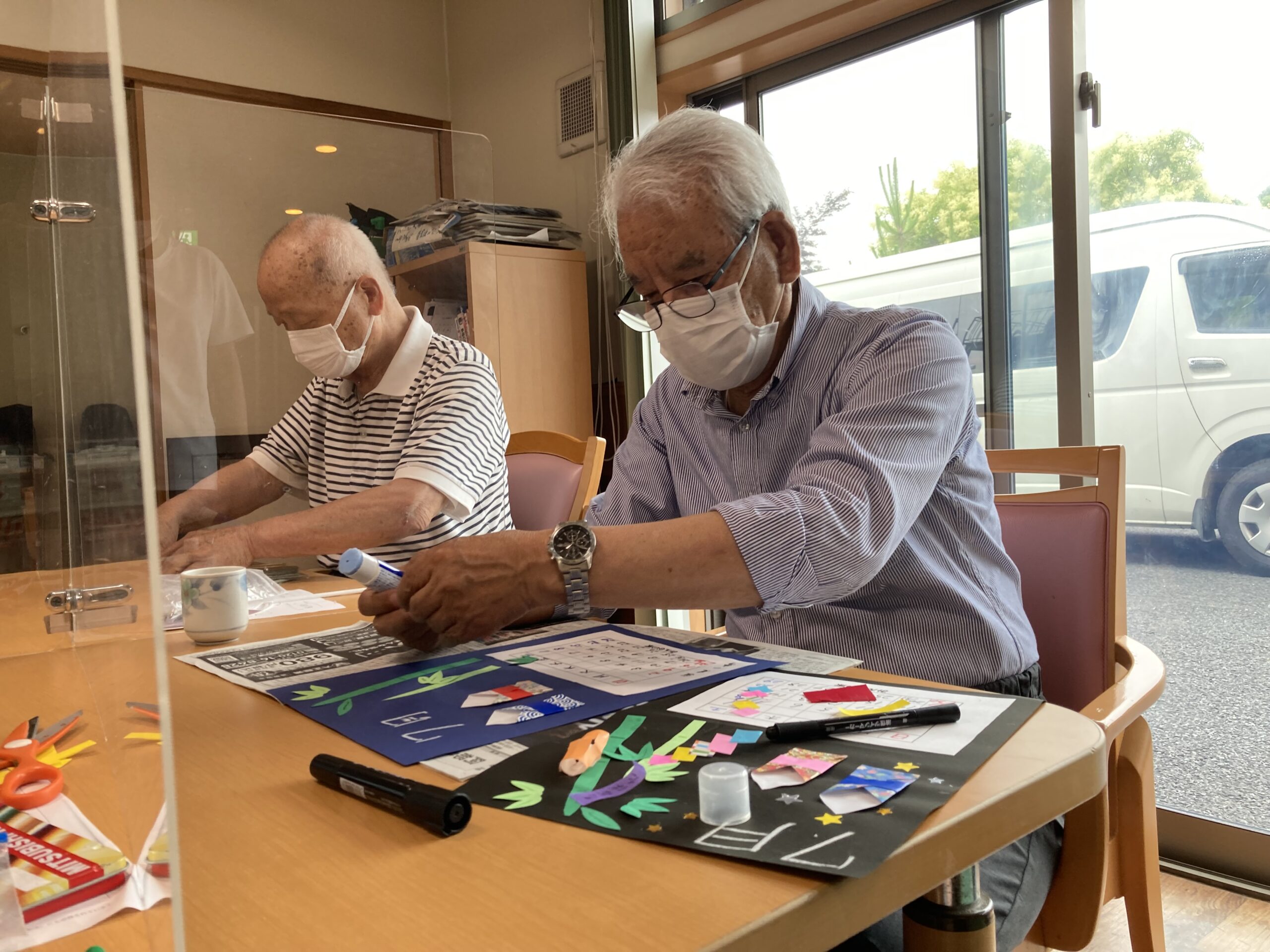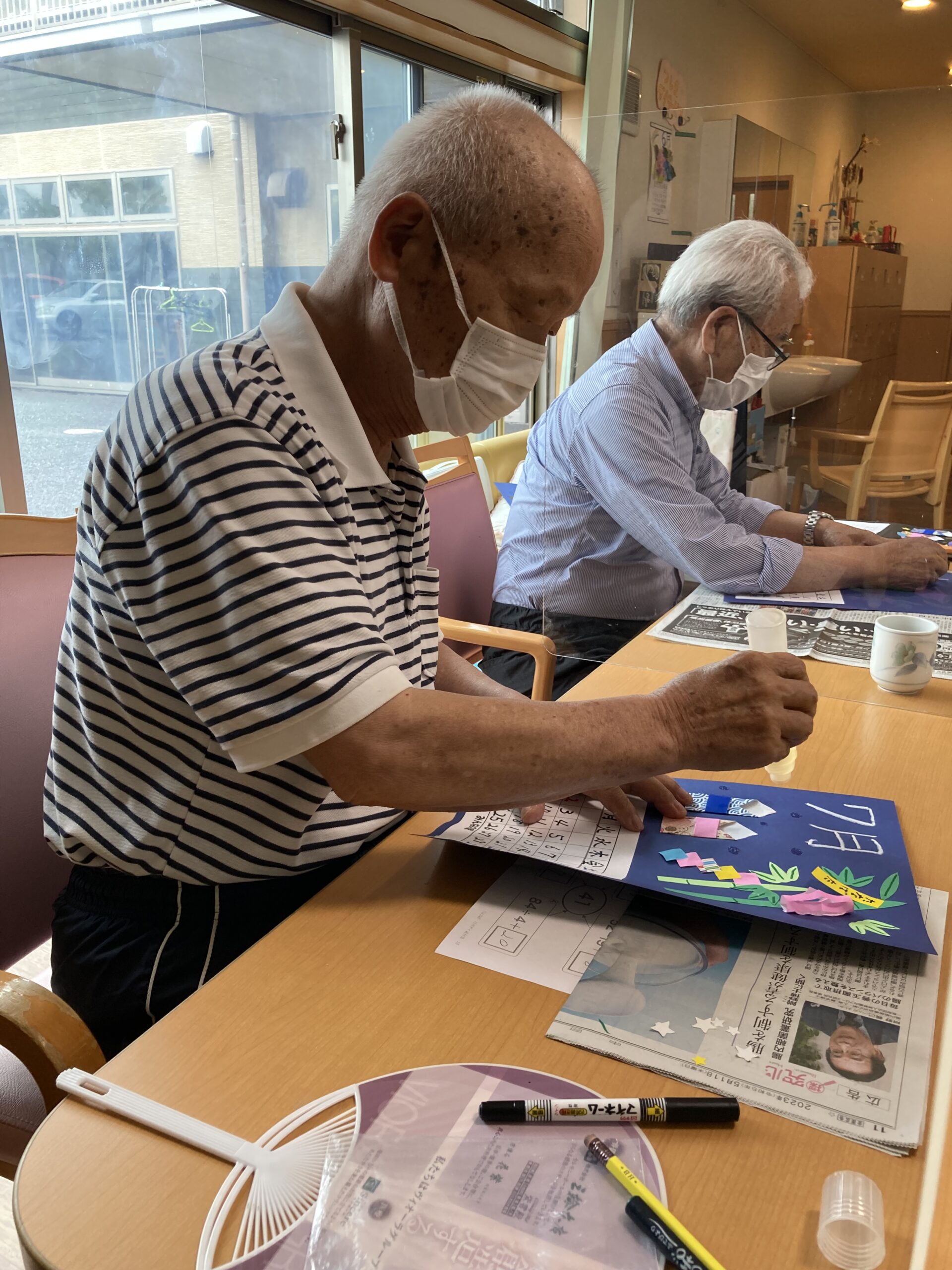 日付や竹、笹の葉に模様を描いたり、のりで星やパーツを貼ったりと皆さん見本を見ながら集中して取り組まれていました。
