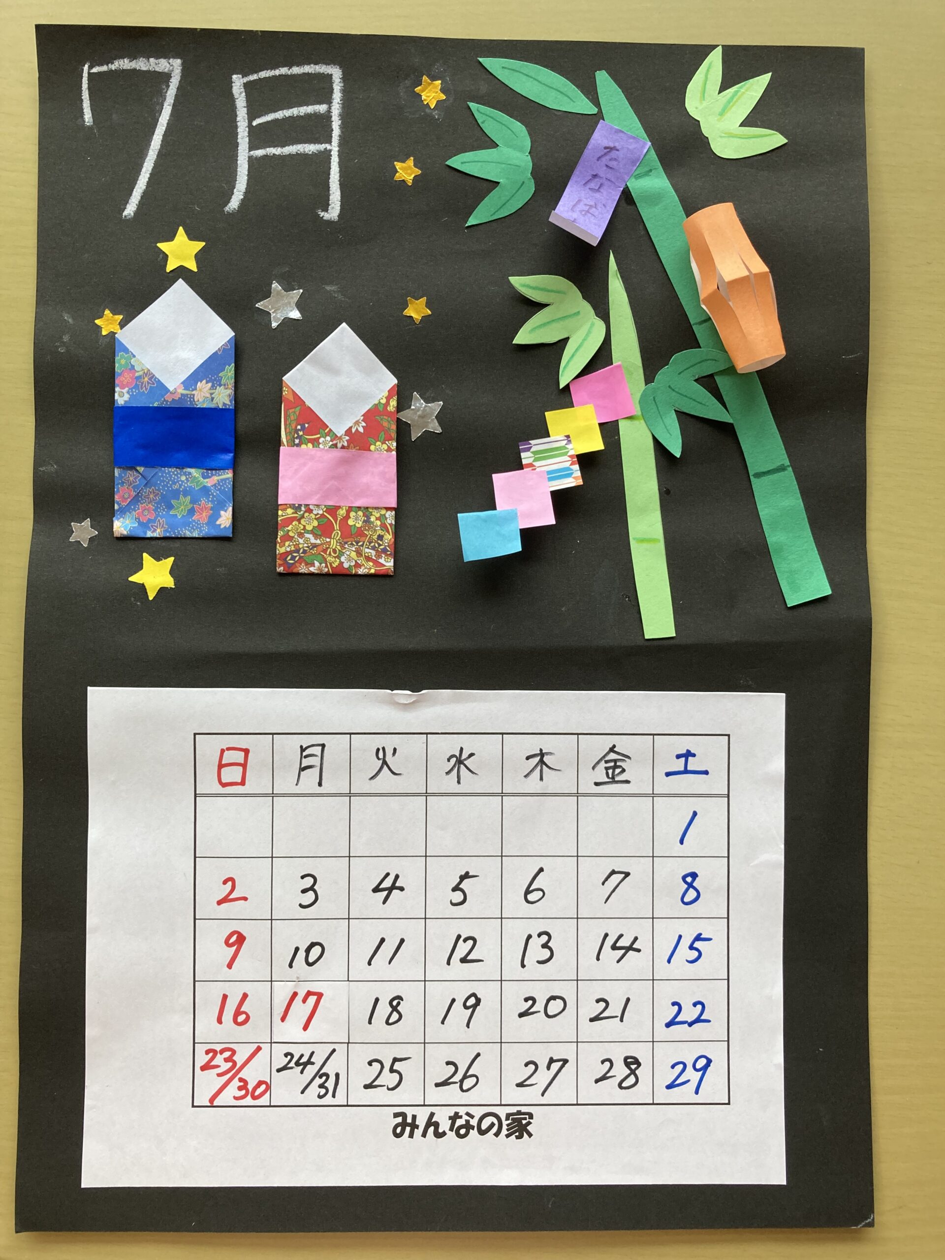 明日から7月!!7月といえば『七夕』。七夕をテーマにカレンダー制作しました。