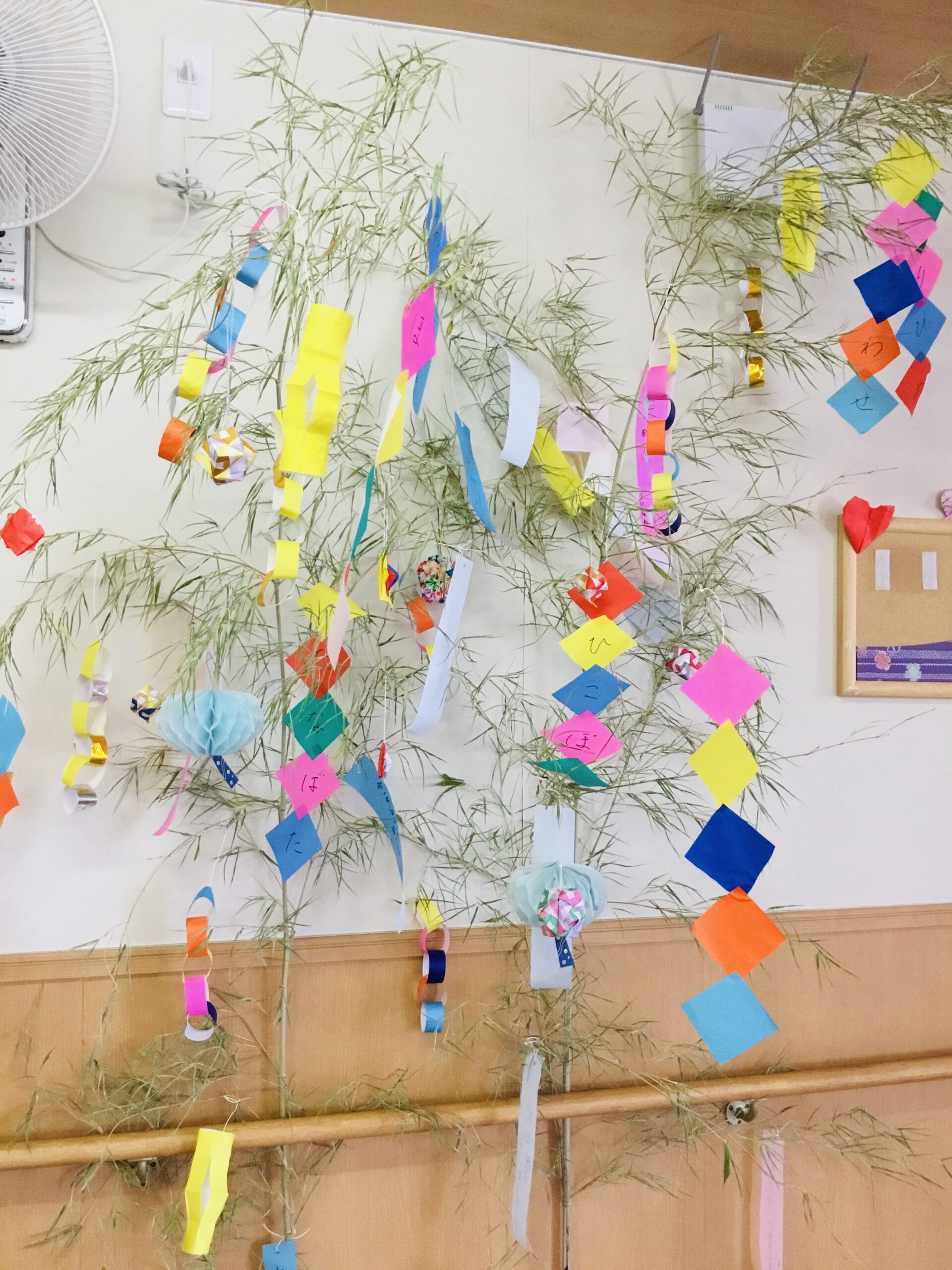 今年も短冊に「何を書こう〜」と利用者様同士相談しながら、思い思いに願い事を書いていました♫