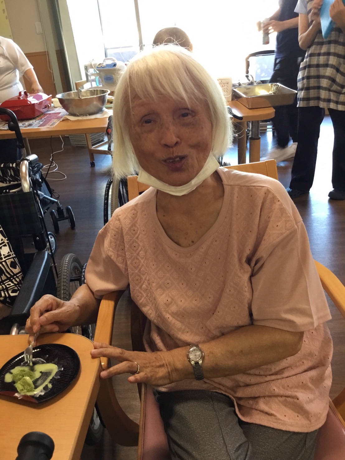 利用者の一人が懐かしそうな笑顔で「昔、家でこんな風にパンケーキを作っていたなぁ」とつぶやきました。その言葉に私も共感しました。これは私たちにとって、家族や友人との楽しい思い出を思い出させてくれる瞬間でした。