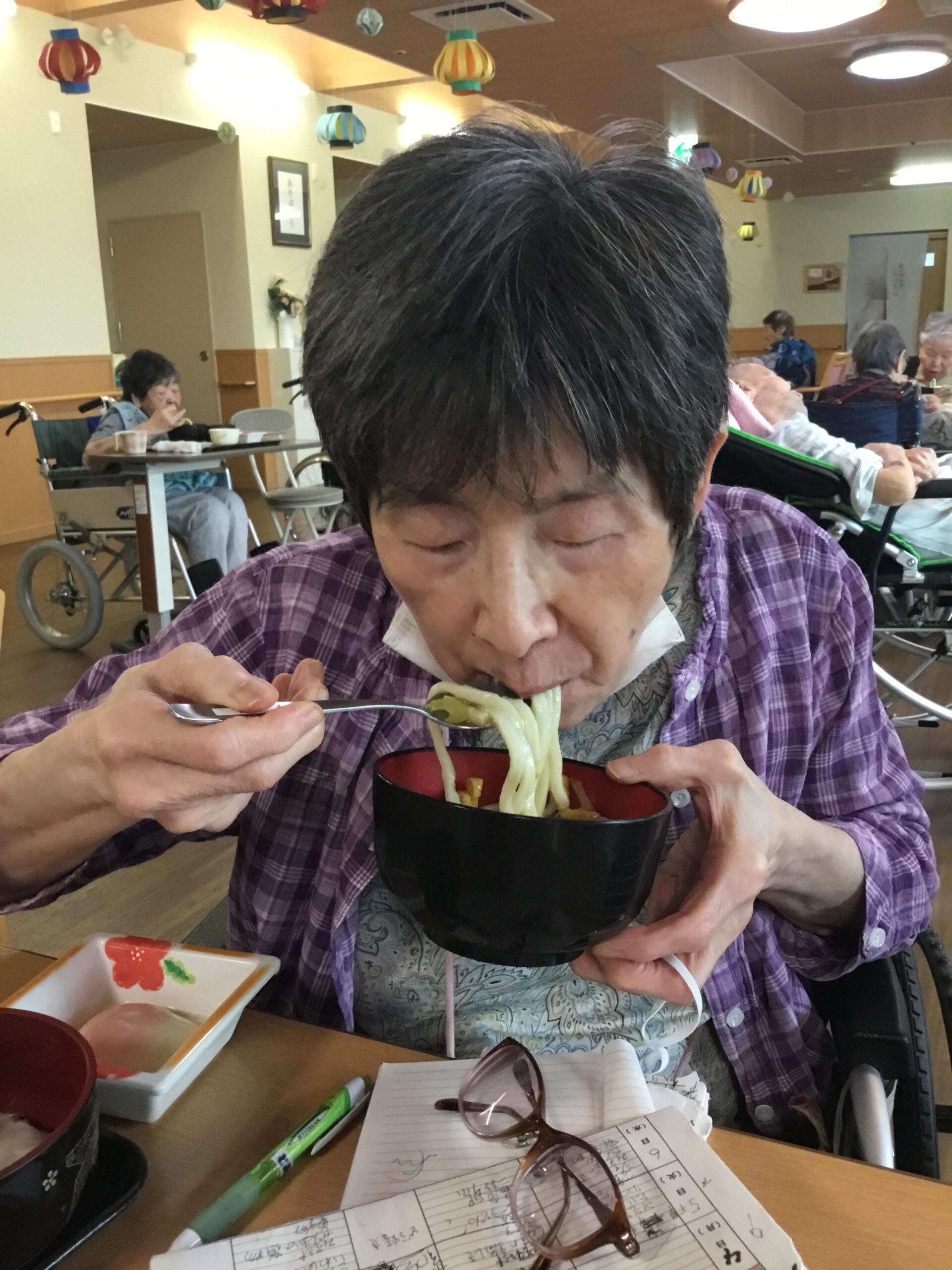 こんにちは、今日は昼食に美味しい「カレーうどん」が提供され皆さんと楽しいランチタイムを過ごしました。香り高いカレースパイスと、ほんのり甘いうどんが絶妙な組み合わせで皆さん美味しく食べる事が出来ました😊