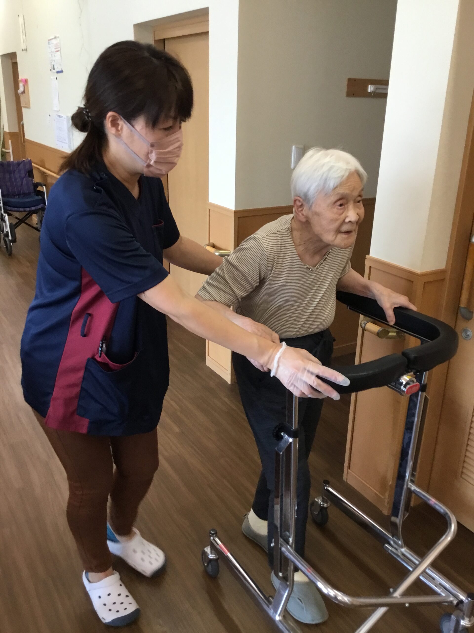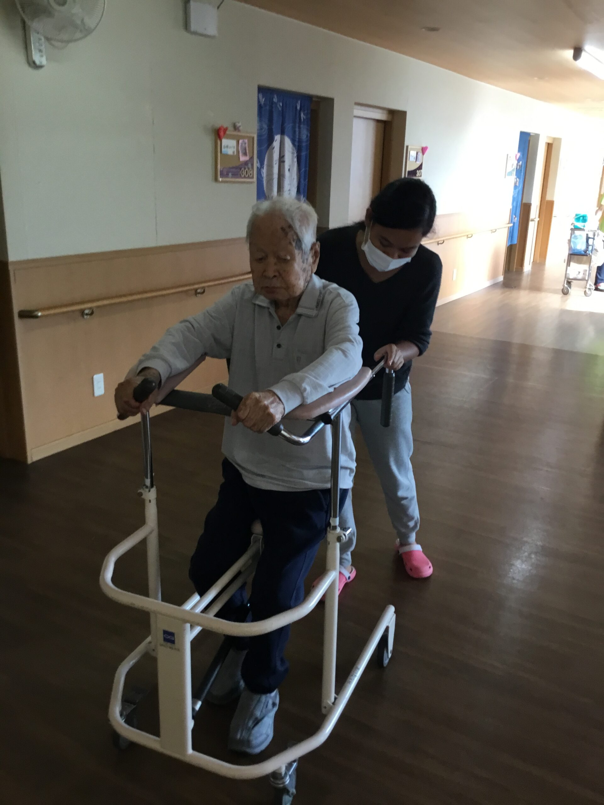 こんにちは、機能訓練の様子をお伝えします。今日も皆さん楽しく身体を動かす事が出来ました。なかでも歩行訓練は高齢者にとって大切な訓練になります。転倒予防、生活の質の向上、筋力と柔軟性の維持などに効果的になります。皆さんが健康で安全な日常生活を送れるよう毎日、続けていきたいと思います😊