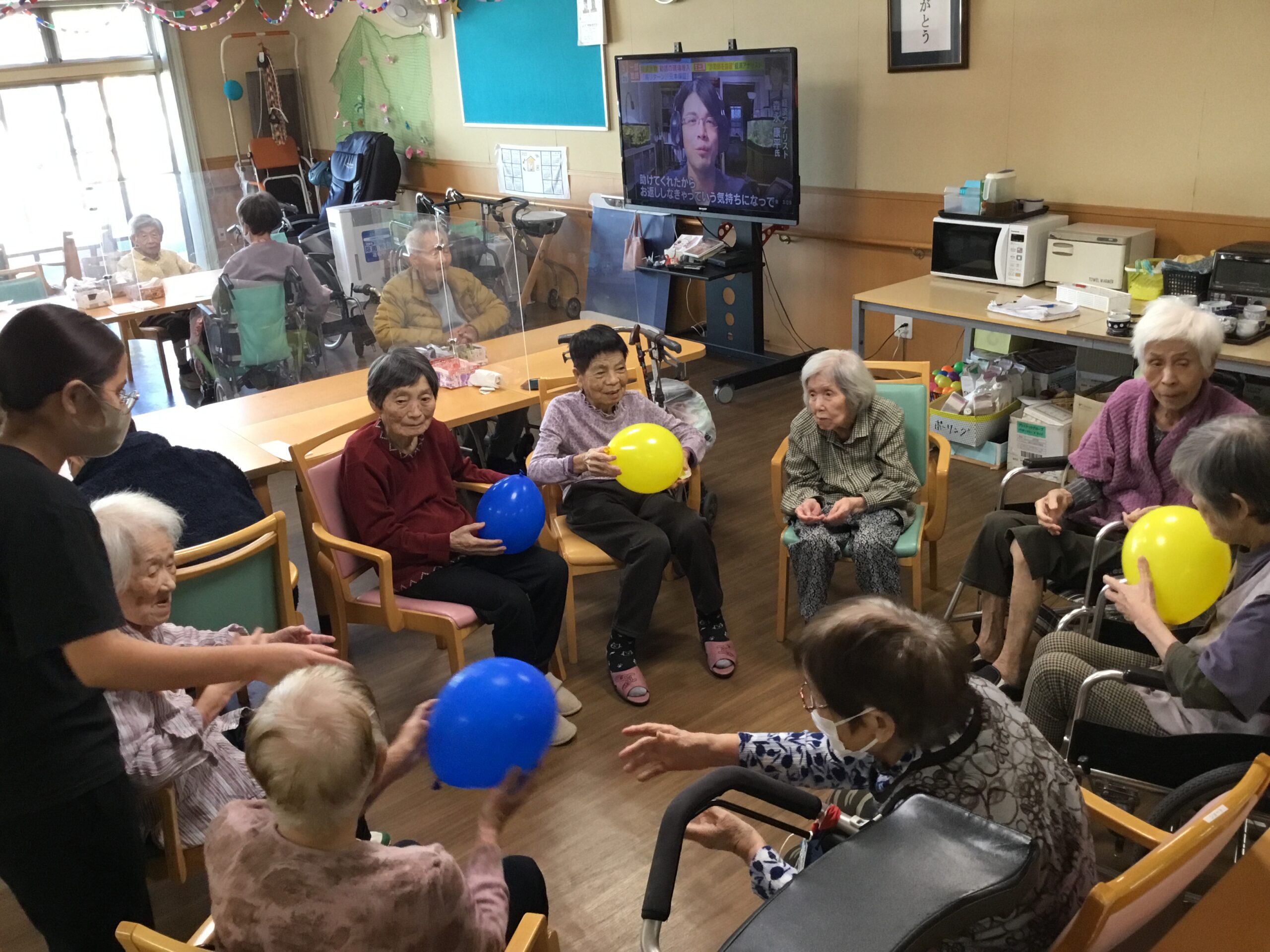 本日は、レクリエーションにて『風船バレー』を行いました。