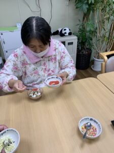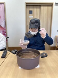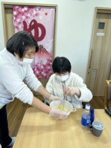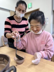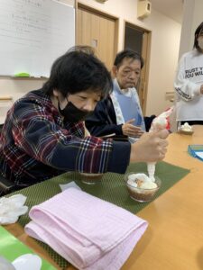混ぜる、溶かす、飾り付けをする工程をそれぞれ担当してもらい