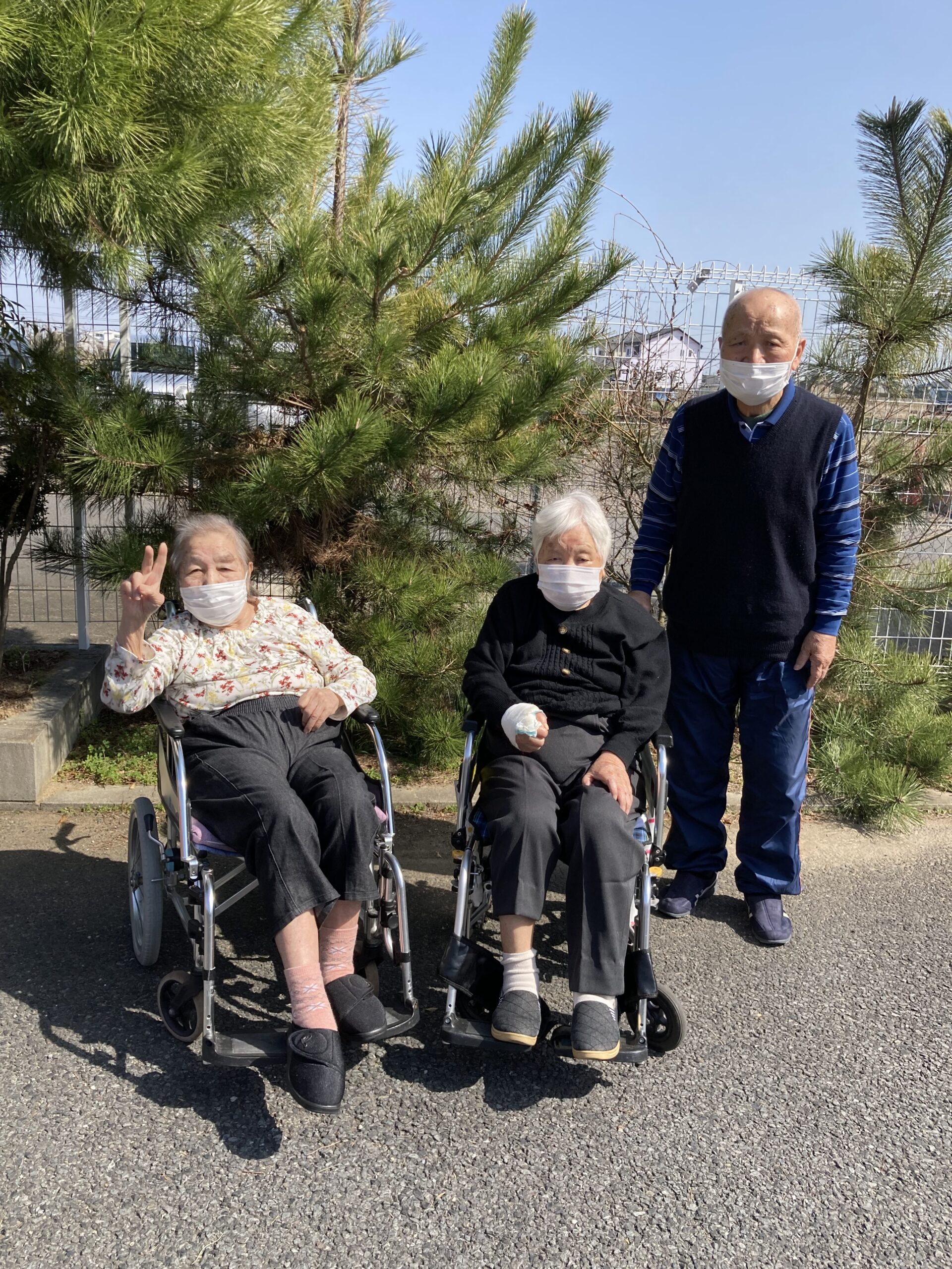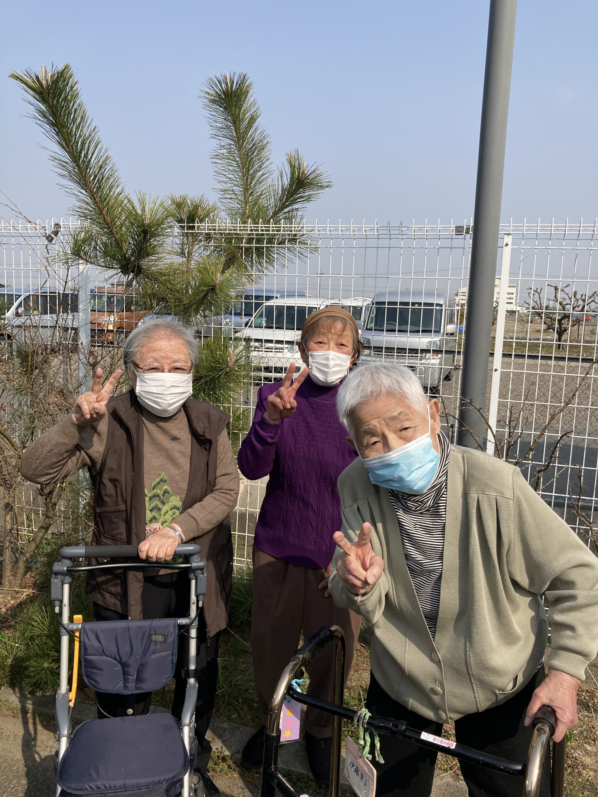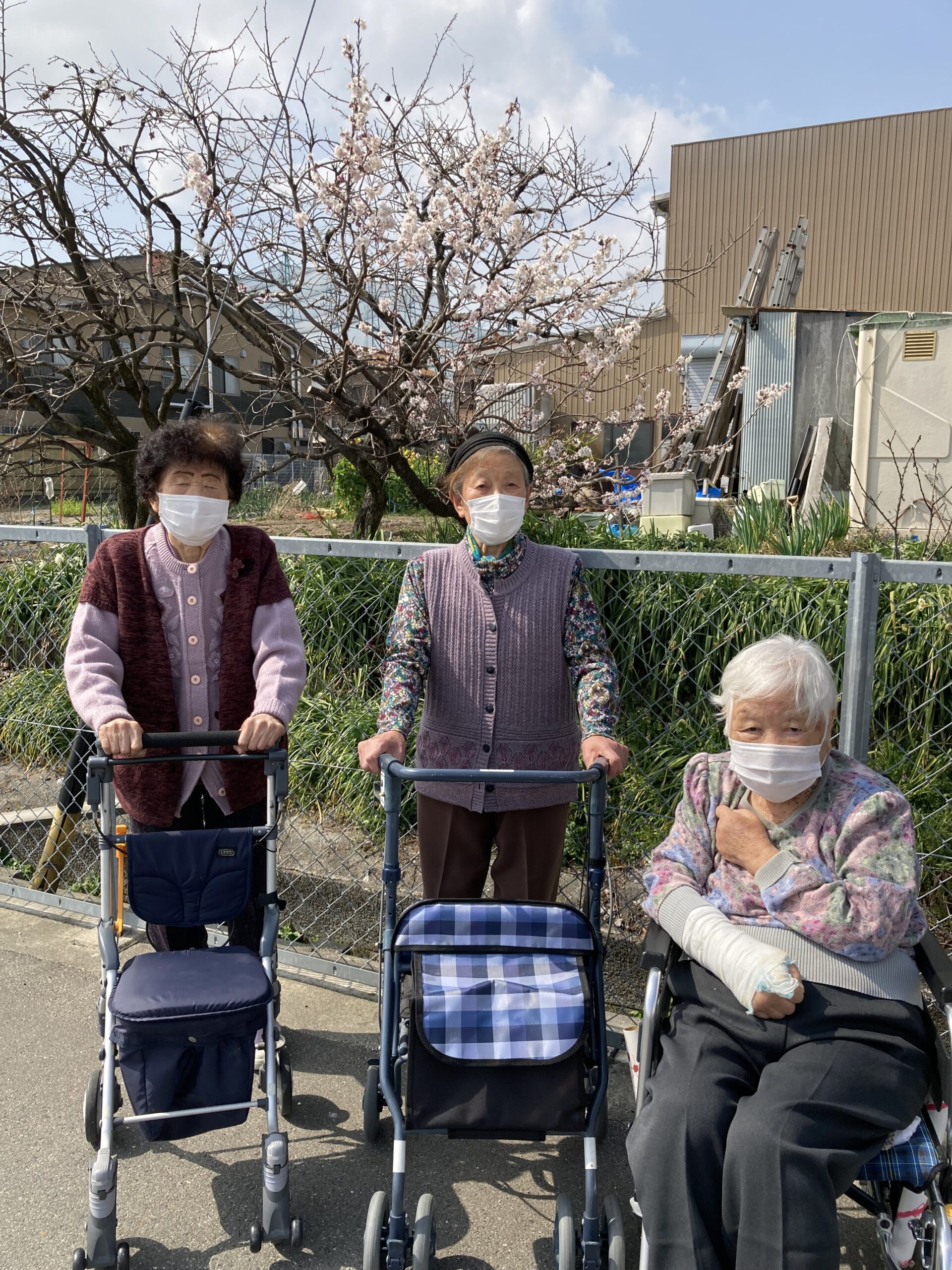 暖かい日が続いていたので敷地内をお散歩しました。「あったかいね!」「気持ちがいいね!」「ちょっと歩くと暑いわ」と話され、駐車場沿いの川には『たにし』がいて、道端には『タンポポ』、通りの木には『梅の花』が咲いており皆さんで眺め気分転換しました。