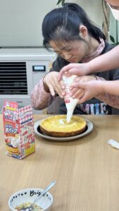 ケーキが3種類あるので組を作ってもらい、みんなで協力してケーキ作り。