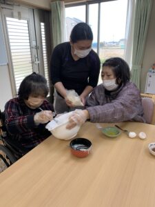 バレンタインにちなんでみんなでケーキを作りました。
