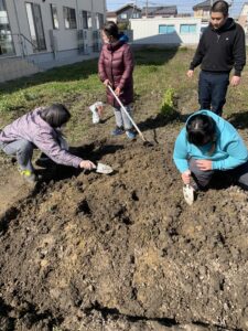 種イモの購入から土づくり、種イモ植えとスタッフの支援を受けながらみんなで協力して実施できました。
