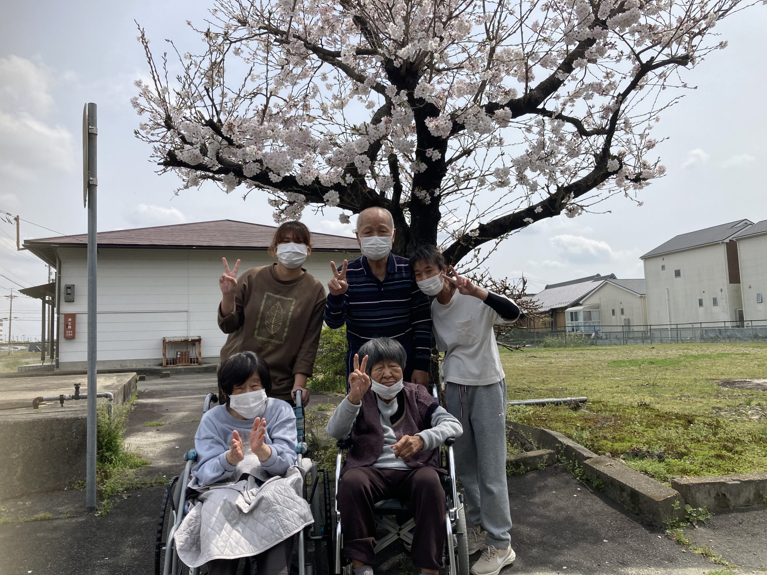 施設周辺のお散歩に出掛けました。お天気も良く、風もなく散歩日和でした。散歩の途中で満開の桜があり、「綺麗に咲いてるね」「満開だね」「今が見頃だねー」等話され、笑顔で写真撮影をしました。しばらく、桜の花を眺めては、「やっぱりいいねー」と言われ、のんびりと施設に戻り、気分転換されました。
