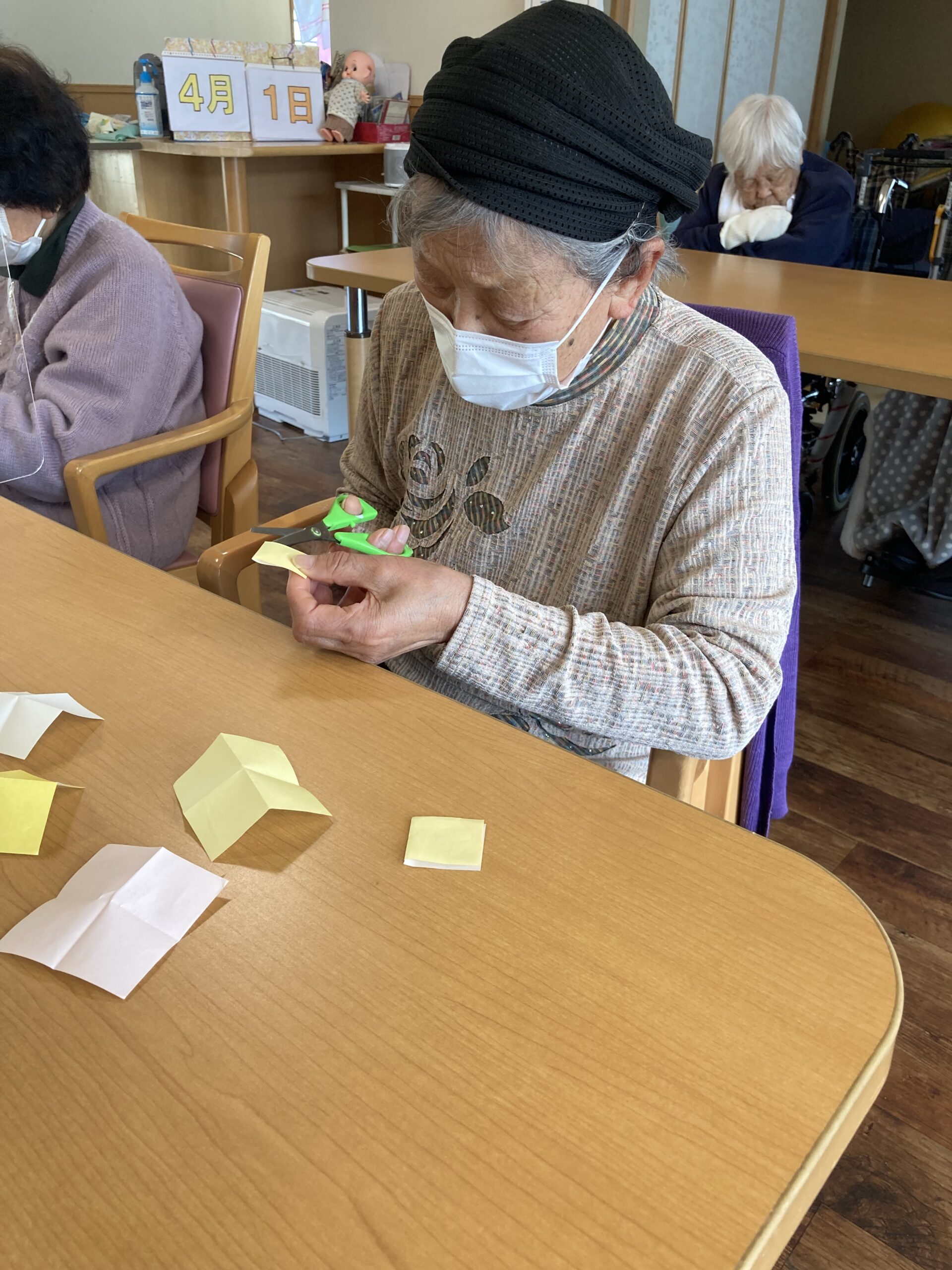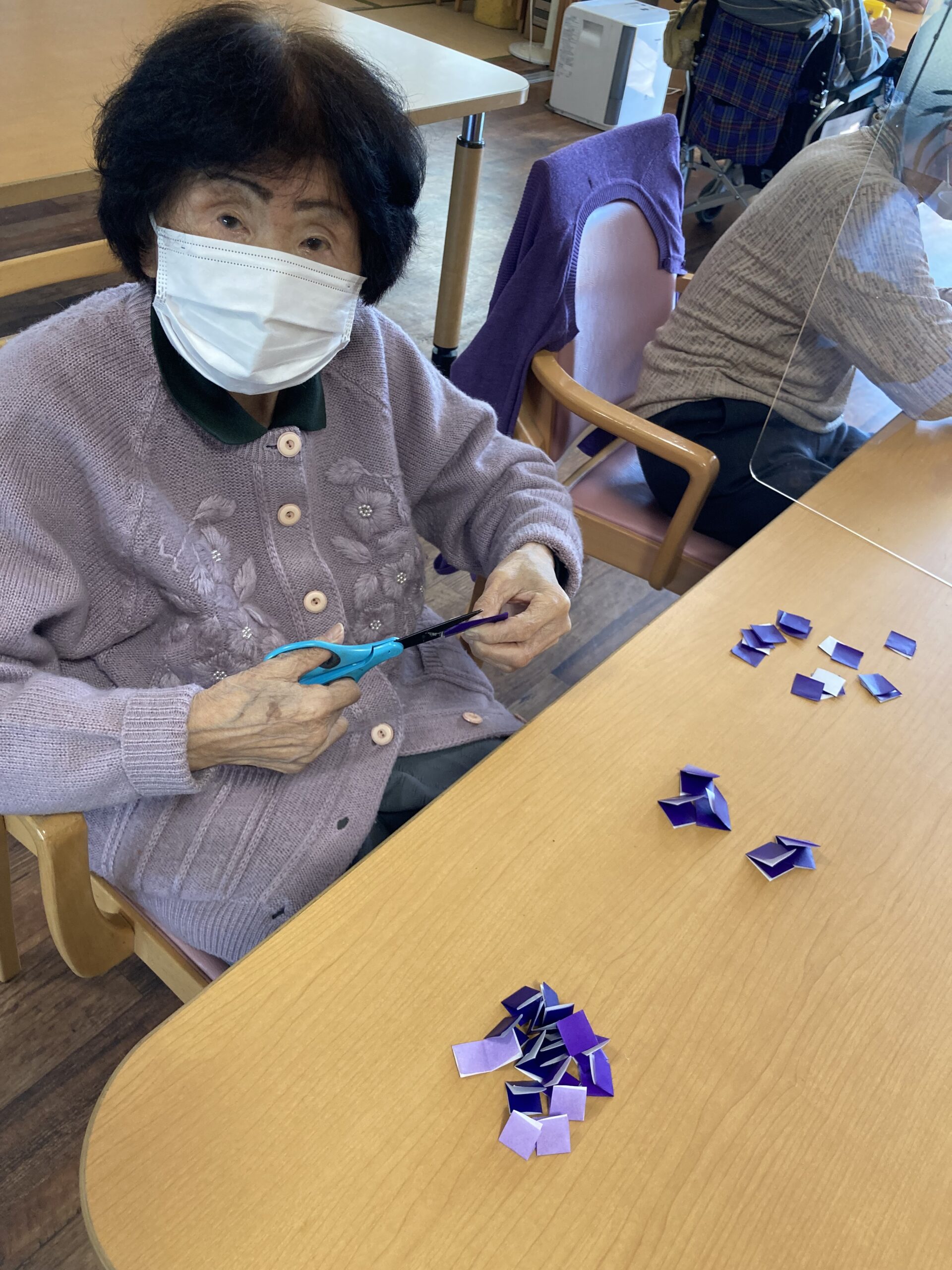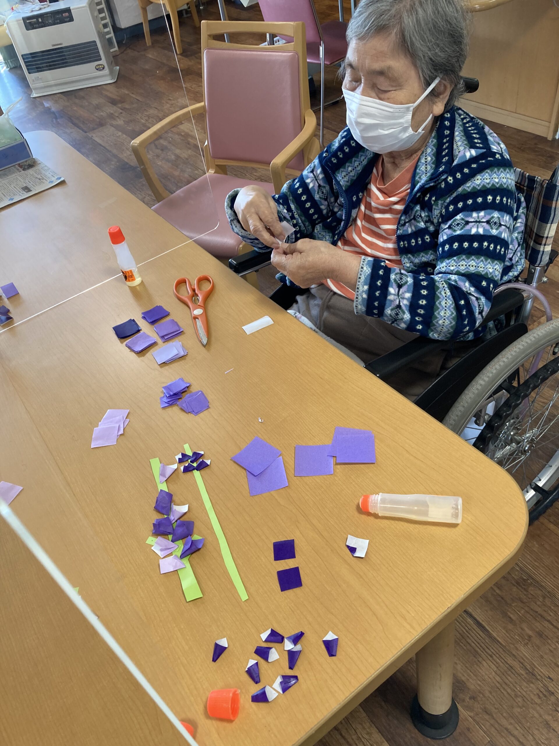デイサービスの壁面も桜から藤の花や鯉のぼり等に変えました。
