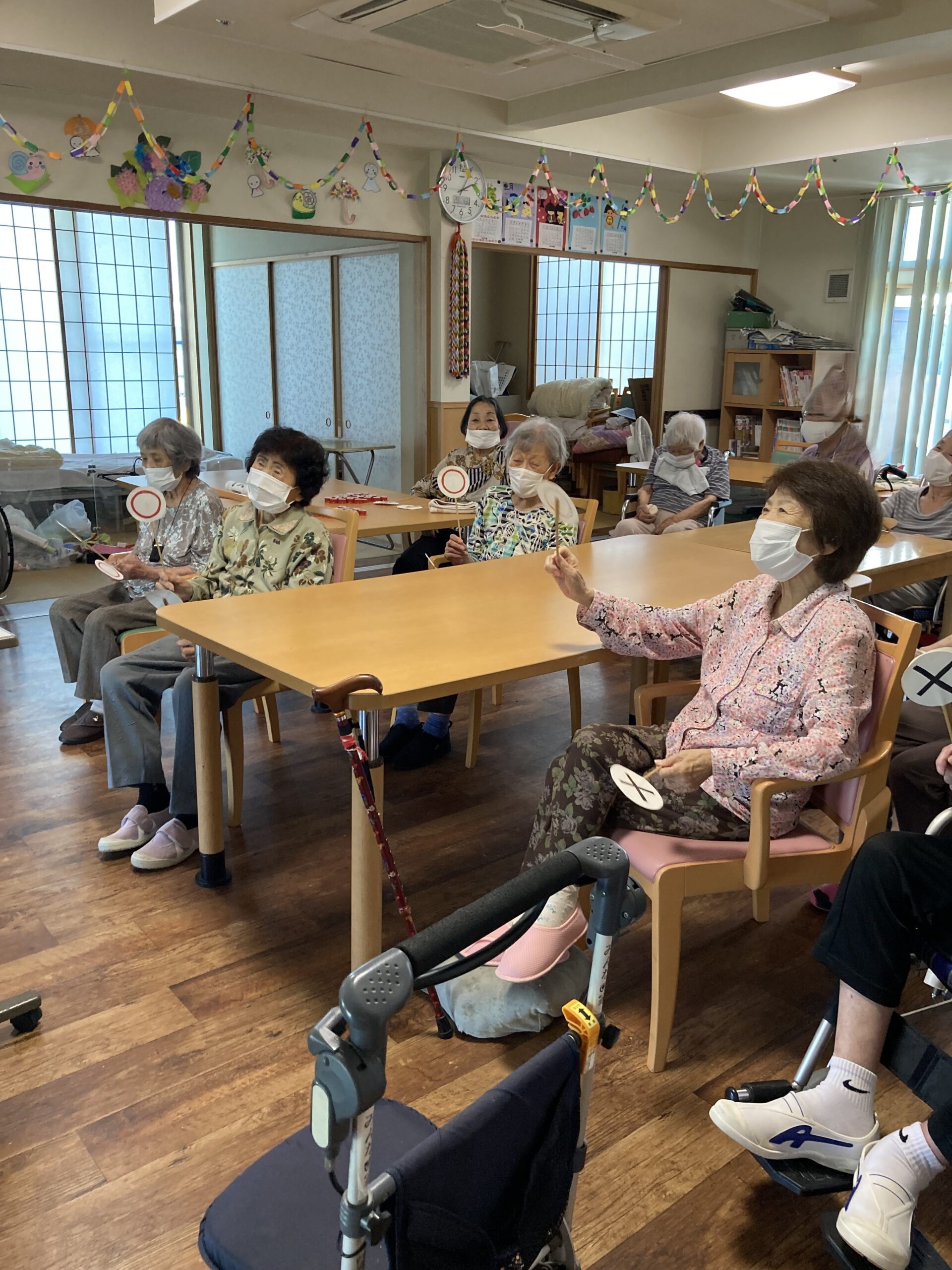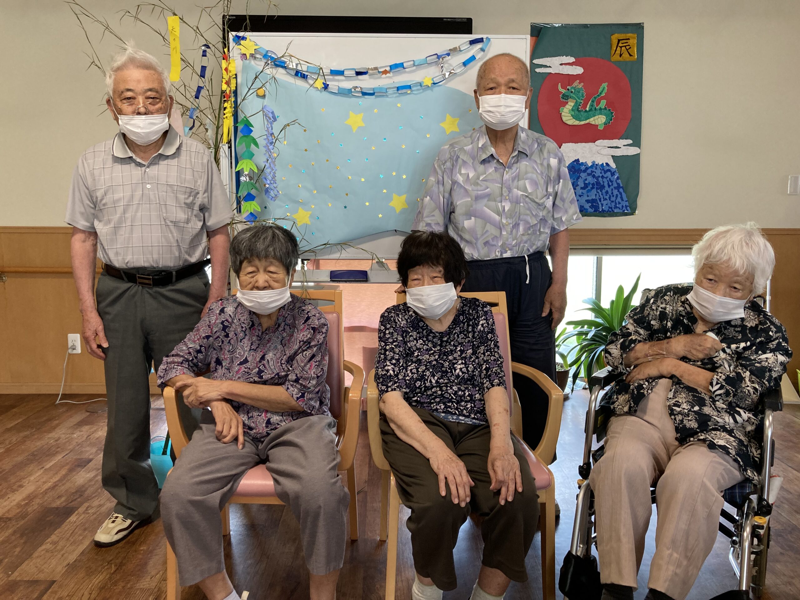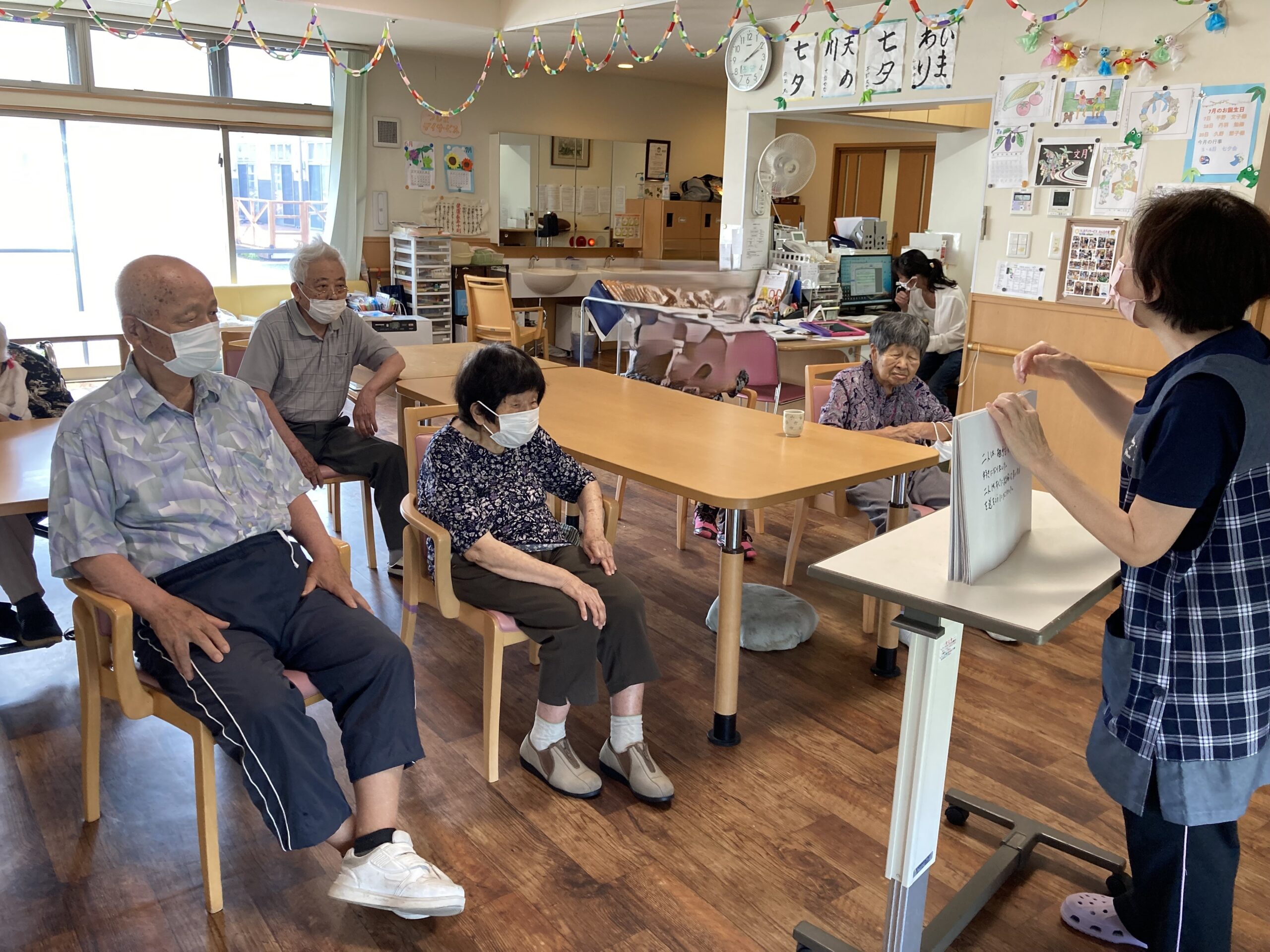 七夕の夜、空に見える川は木曽川?天の川?などの質問に皆さん全問正解!!その後は、歌やゲームで楽しまれました。