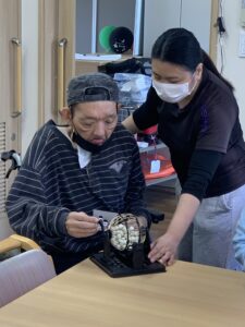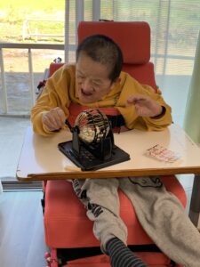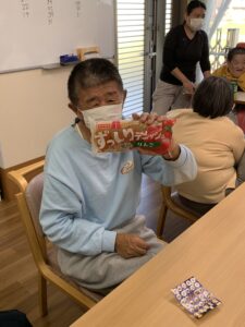 11/3(日)希望の家ではビンゴ大会が開催されました。ビンゴの景品の買い出しから入居者と一緒に行い、抽選は順番に入居者の方に行っていただきながら進行。景品欲しさにビンゴカードの数字を探すのに集中されており、もなさん景品をもらうととても嬉しそうにされてました。集中力を養う訓練や身体の機能訓練を楽しみながら実施できました。