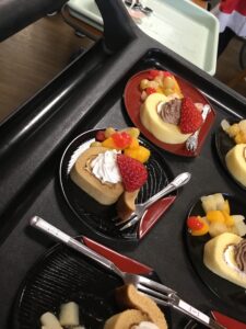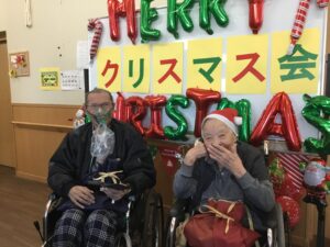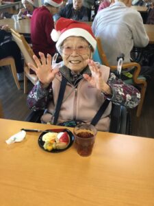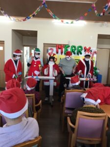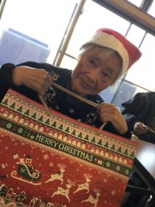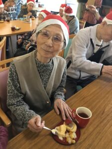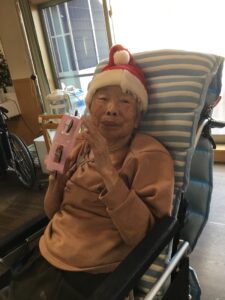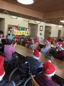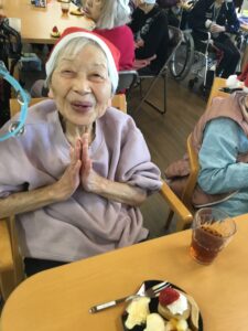 かわいいケーキを見ると皆さんニコニコ☺️ケーキの後にはサンタさんがプレゼントを運んできてくれました。