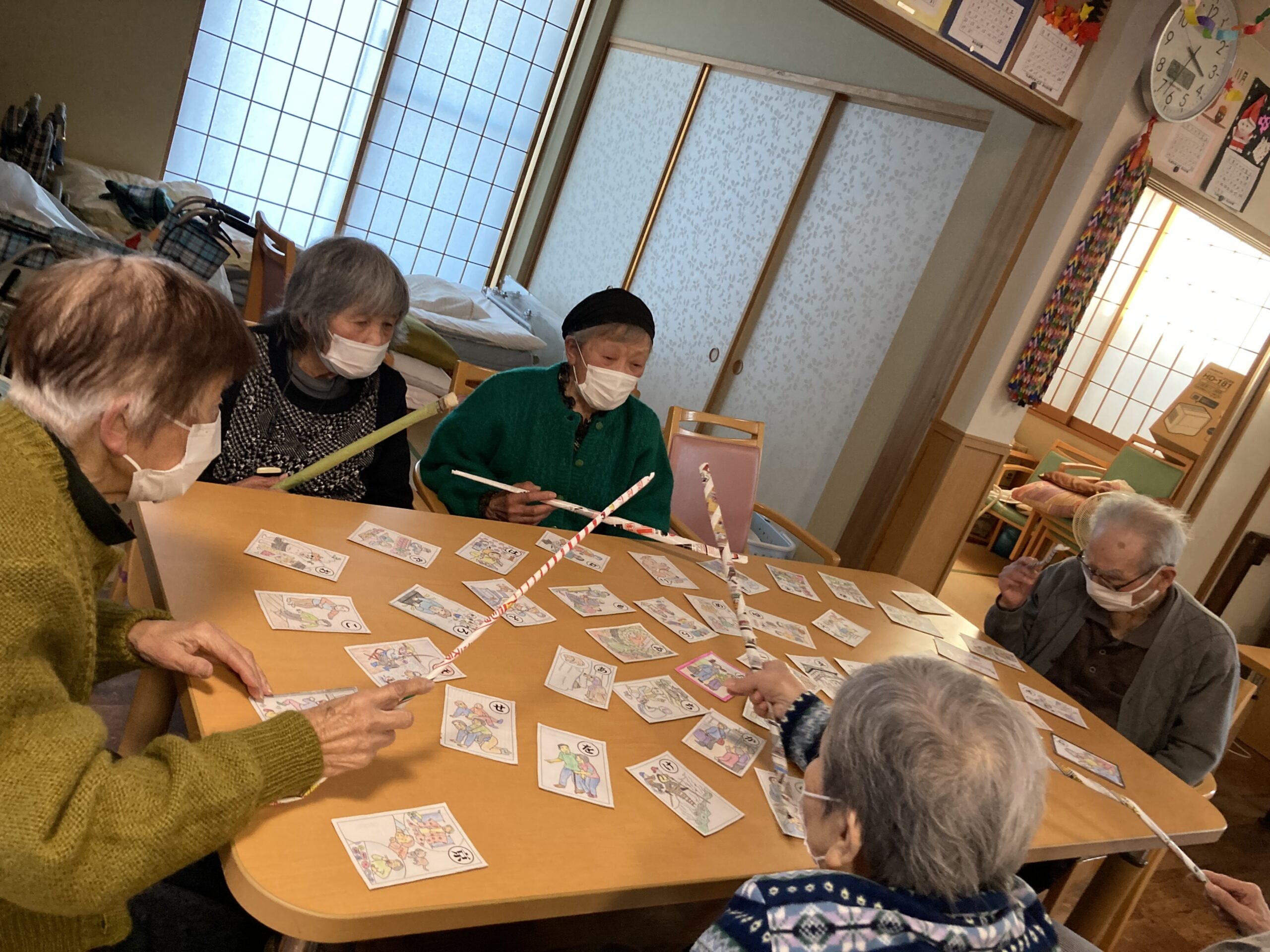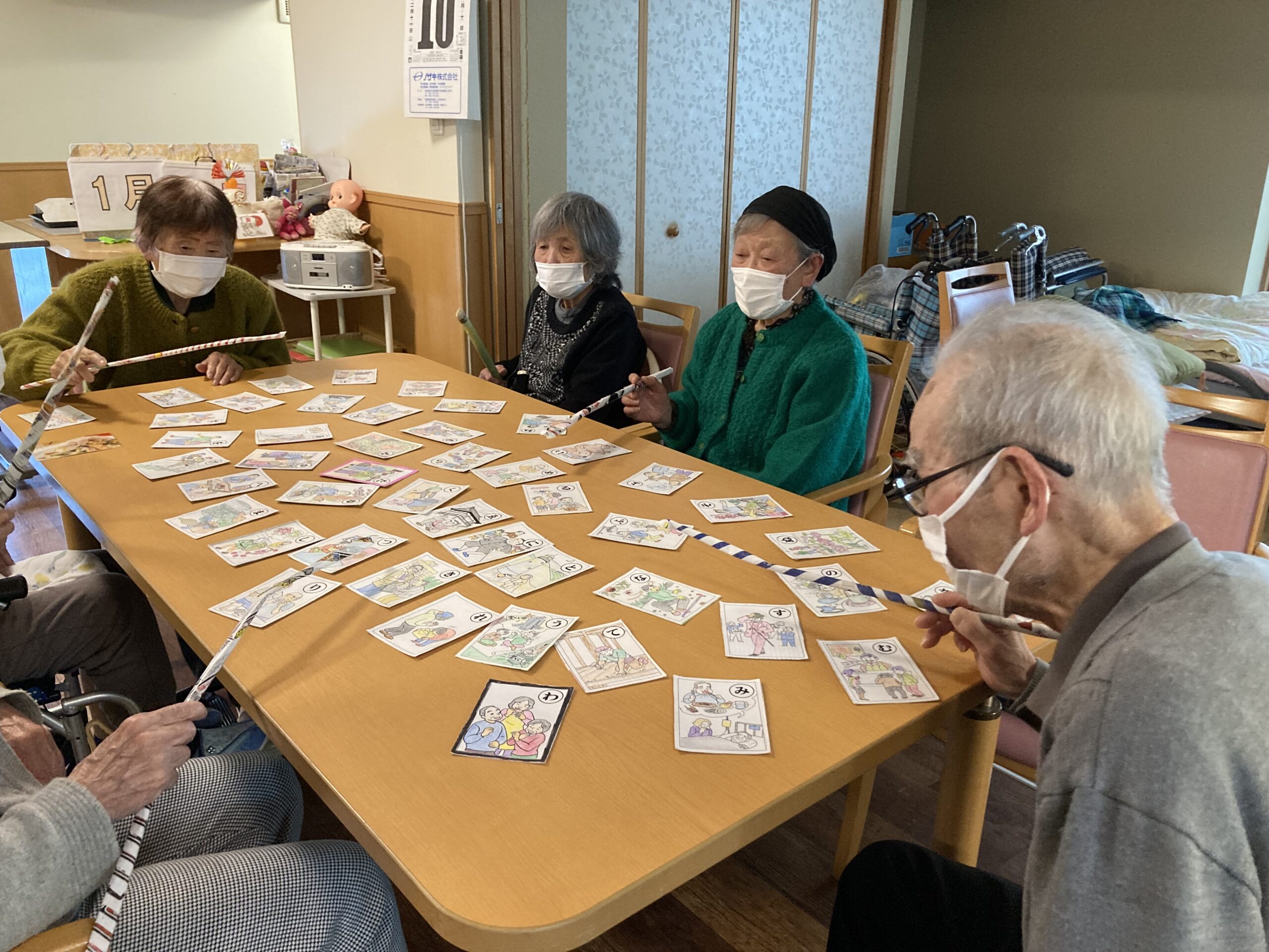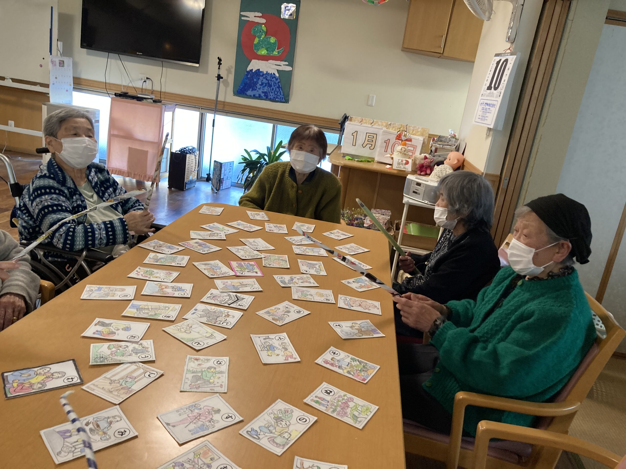 読み札が読まれると皆さん、隅から隅までみて、「はい」と言い、取られていました。