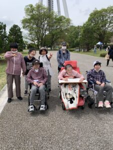 今週は一宮にある138タワーパークで行われていたスプリングフェスへ行きました。弁当を持って公園へ行きみんなでテーブルを囲んで昼食にし、食後に園内を散策しました。イベント期間でステージで演奏や子供たちのダンス発表が行われていたり、花壇に咲く花を見たり飾られていた大量のこいのぼりを見たりとみなさんとても楽しそうに過ごされていました。
