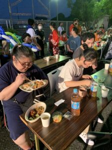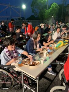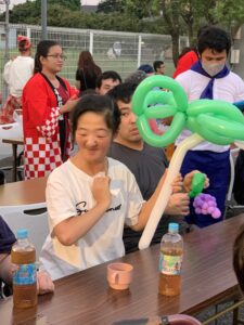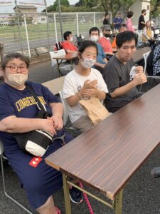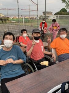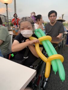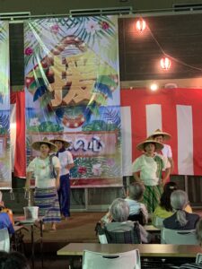 9月14日(日)みんなの家と合同で夏祭りを行いました。今年のテーマは「和援」、みんなの家および希望の家では日本人だけではなくフィリピン、ミャンマー、スリランカ、インドネシアの海外職員も支援に入っています。その中で国に関係なく調和し支え合う事で笑顔の生まれる支援をするという思いを込めて夏祭り委員がテーマを決めました。プレゼンテーションとしてはボランティアによる発表、日本・フィリピン・ミャンマーそれぞれの伝統的な踊りの発表、フィリピンのゲーム大会、1年間の想い出のDVD鑑賞、花火を行いました。ボランティア発表でできたバルーンアートをもらって笑顔が見られた方、大勢での屋外の食事を楽しまれた方、炭坑節の音楽に合わせて和太鼓を叩いて楽しまれた方、ゲームに参加して景品をもらい喜ばれていた方など、約3時間と長い時間でしたがみなさんそれぞれが夏祭りを楽しまれとても有意義な時間を過ごすことができました。