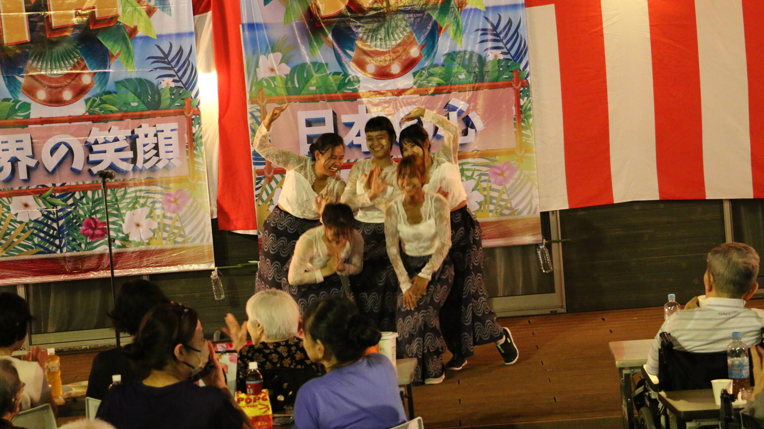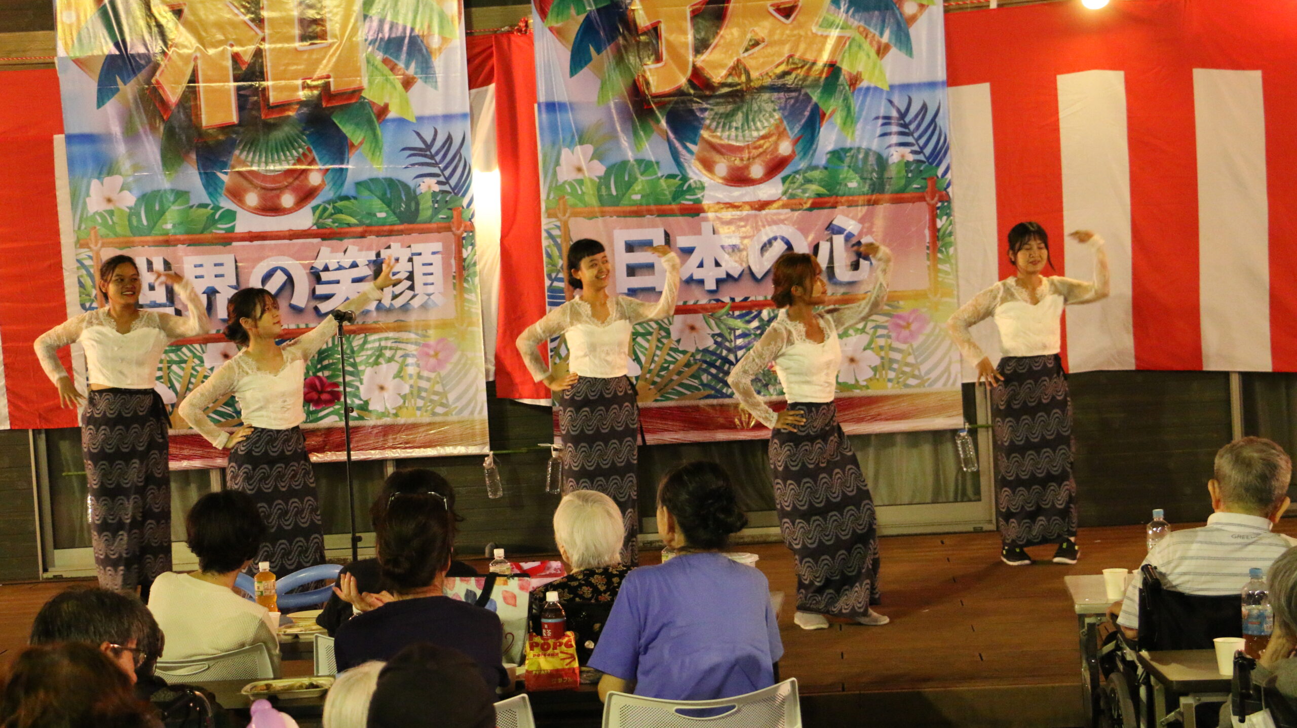 続いては、スタッフによる多国籍パフォーマンス。ミャンマーの歌や踊り、フィリピンの元気いっぱいのリズム、スリランカの伝統的な雰囲気、日本のなじみ深い歌と踊りなど、それぞれの国の個性を活かした出し物に、観客の目は釘づけ。普段は介護の場で接しているスタッフの新しい一面に、利用者さんもご家族も嬉しそうに拍手を送っていました。「国は違っても心は一つ」というテーマが、まさにステージの上で表現された瞬間でした。