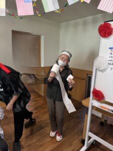借り物競争では、「歌う時に使うもの」「スプーン」「トイレットペーパー」など