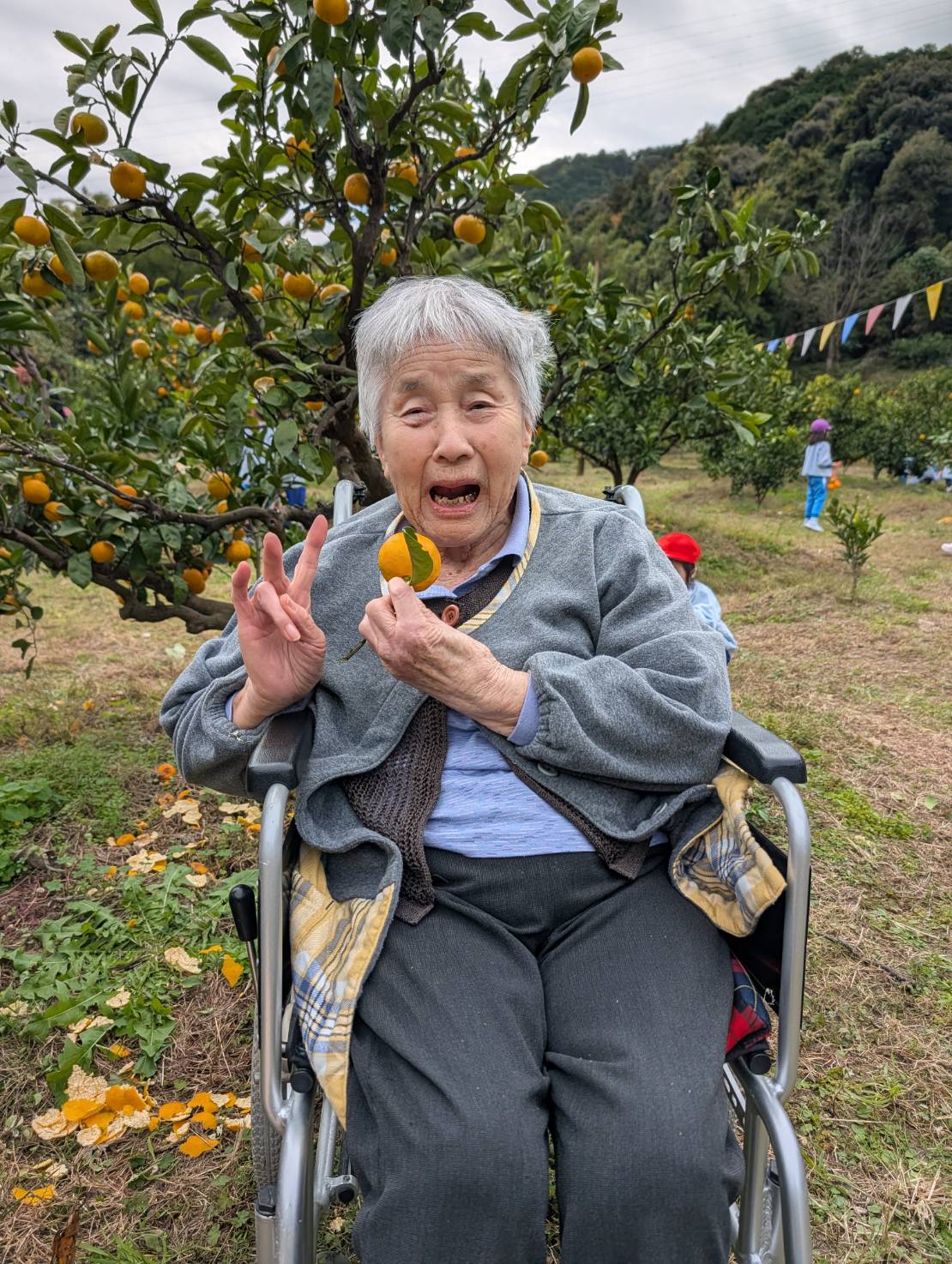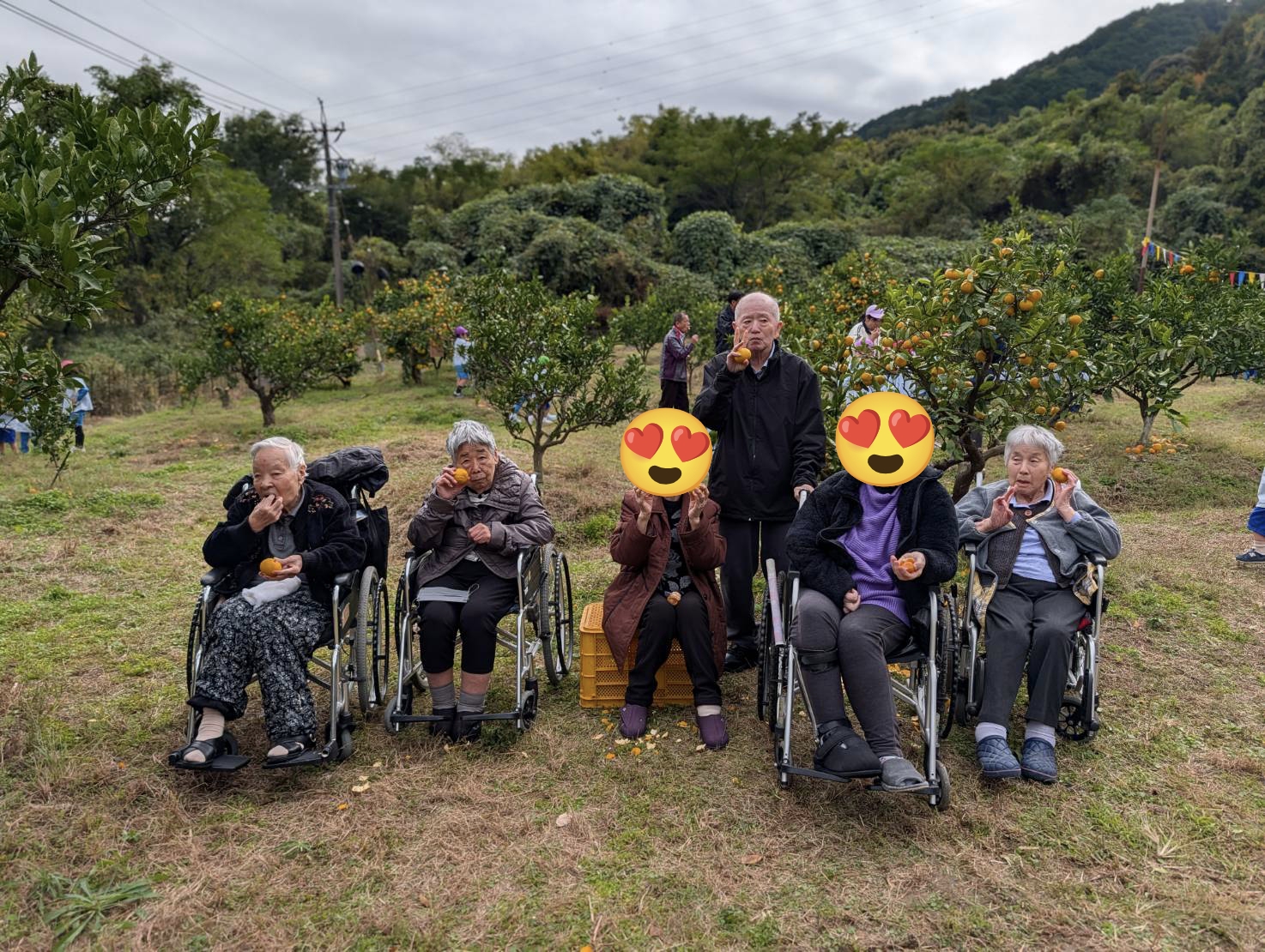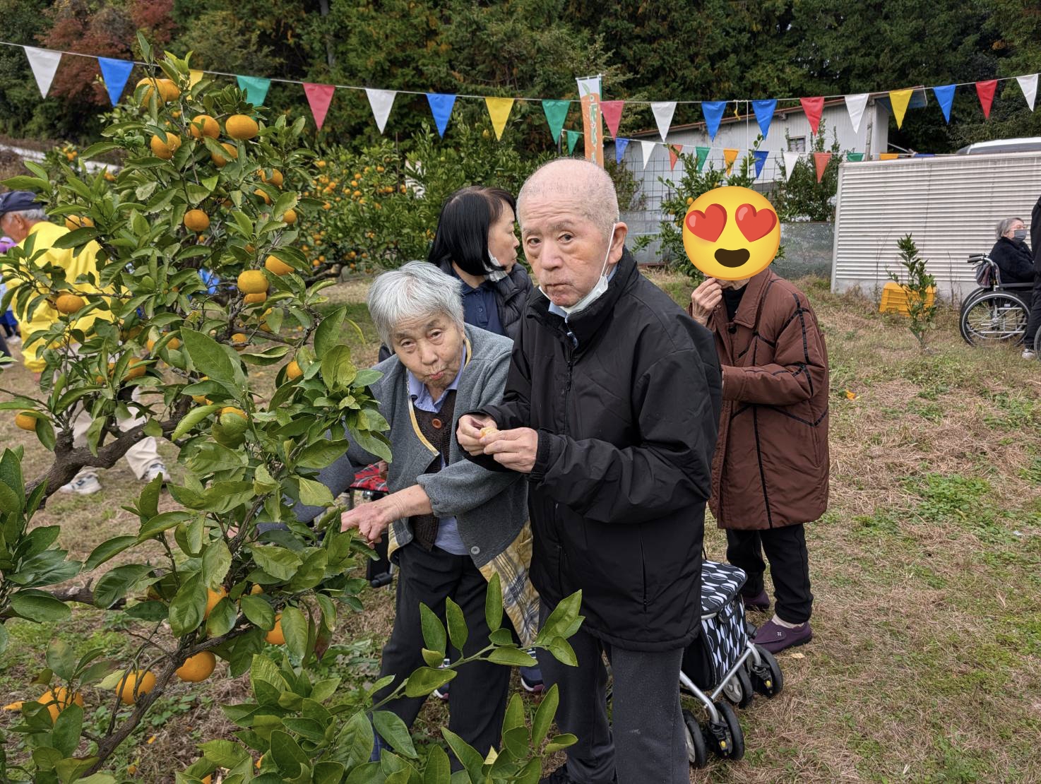 今日は天気もよく、みかん狩りにはぴったりの日でした。利用者さんたちは笑顔いっぱいで、木になったみかんを一つ一つ丁寧に取りながら、「このみかん大きいね」「甘そうだね」と楽しそうに話していました。太陽の下で食べたみかんはとても甘くて、皆さん「おいしい」と満足そうな表情を見せていました。