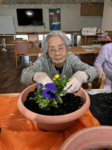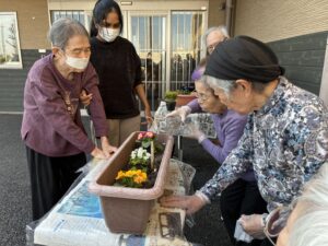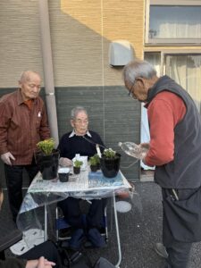 「根本をほぐすといいんだよ」や「大きくなれよ」等と話されながら手際よくプランターに植え替えられていました。