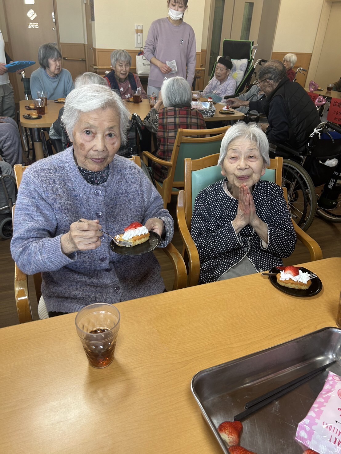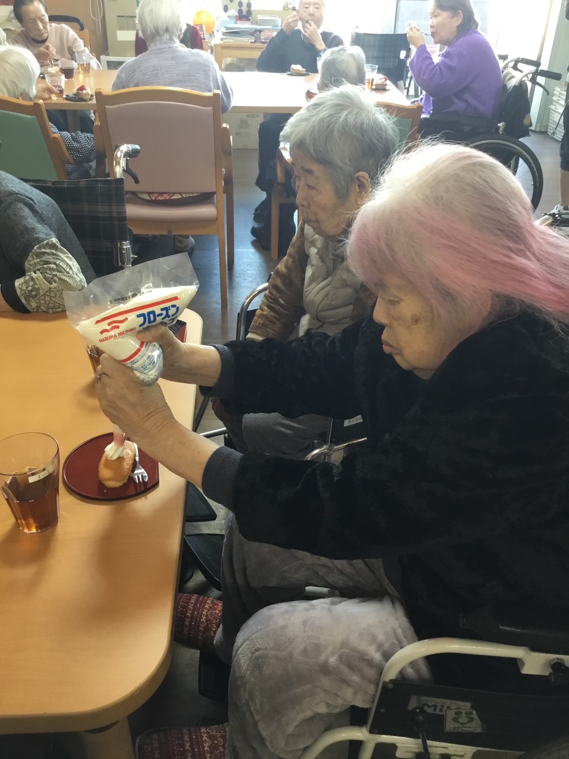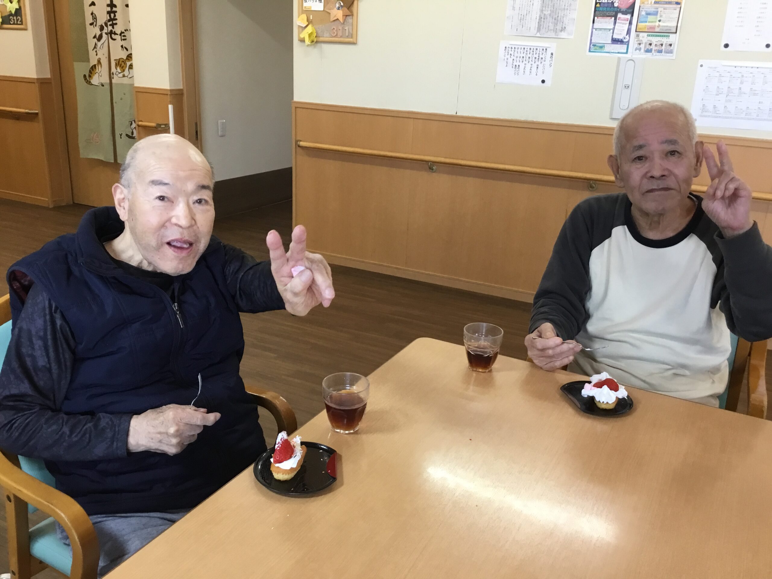 今月の誕生日会では、健康に関するクイズ大会と手作りおやつレクリエーションを行いました。クイズ大会では、日常生活で心がけたい健康習慣や身体に関する問題を提出しました。楽しみながら健康について学んでもらう時間になりました。手作りおやつレクリエーションでは、カップケーキ作りに挑戦しました。皆さんと一緒に作ったケーキは見た目も可愛いらしく「美味いね」と笑顔で召し上がる姿が印象的でした。心身ともに健やかにお過ごしいただけるよう努めてまいります。