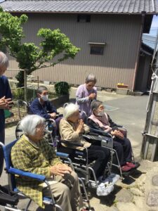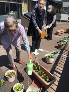 今日は天気がいいから、育てていた花や野菜に水やりをしてから近くの神社にお参りして散歩することにしました。