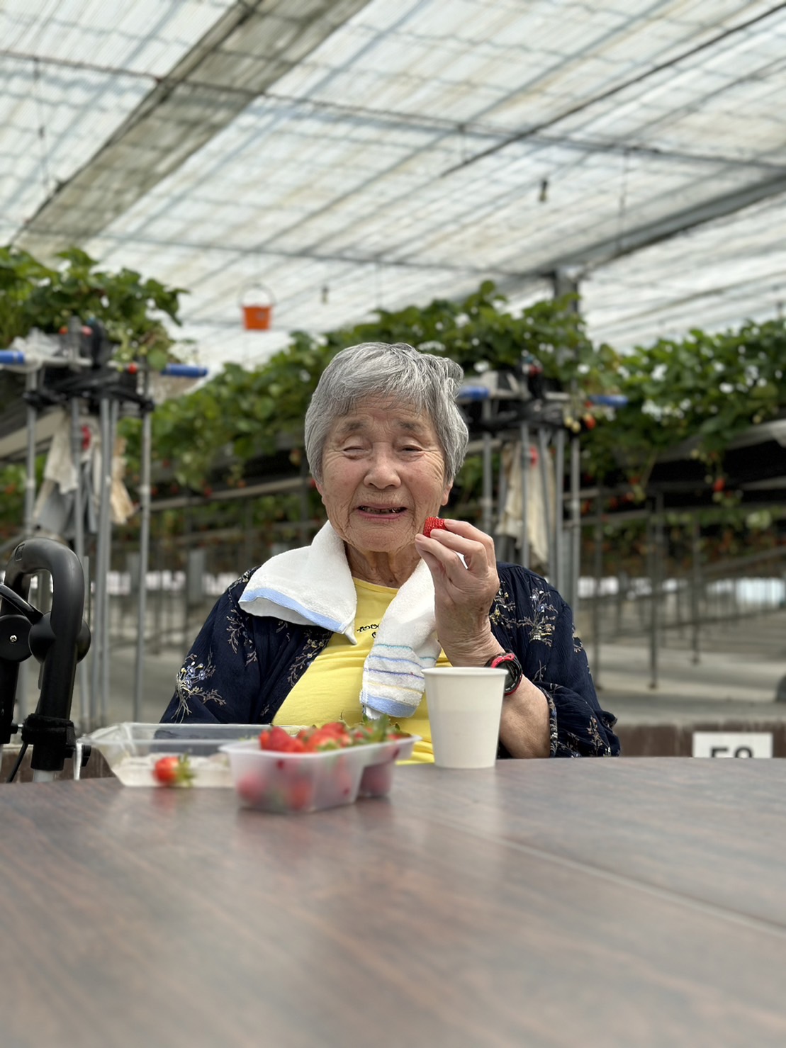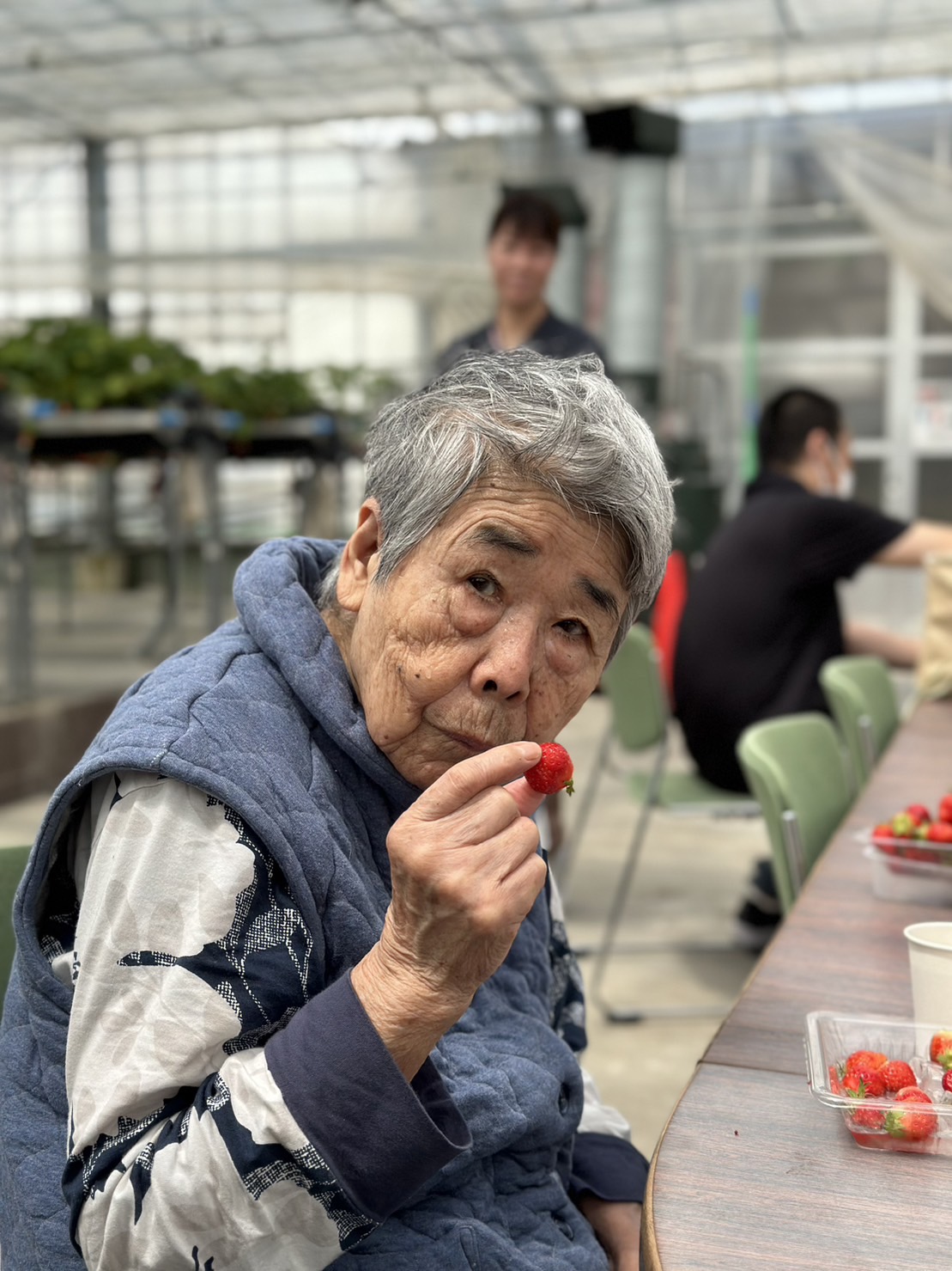 朝、私たちはワクワクしながら送迎車に乗り込み、いちご農園へと向かいました。車の中では仲間たちとわいわいと楽しい会話を交わしました。私たちの心はいちご狩りの期待で一杯でした。